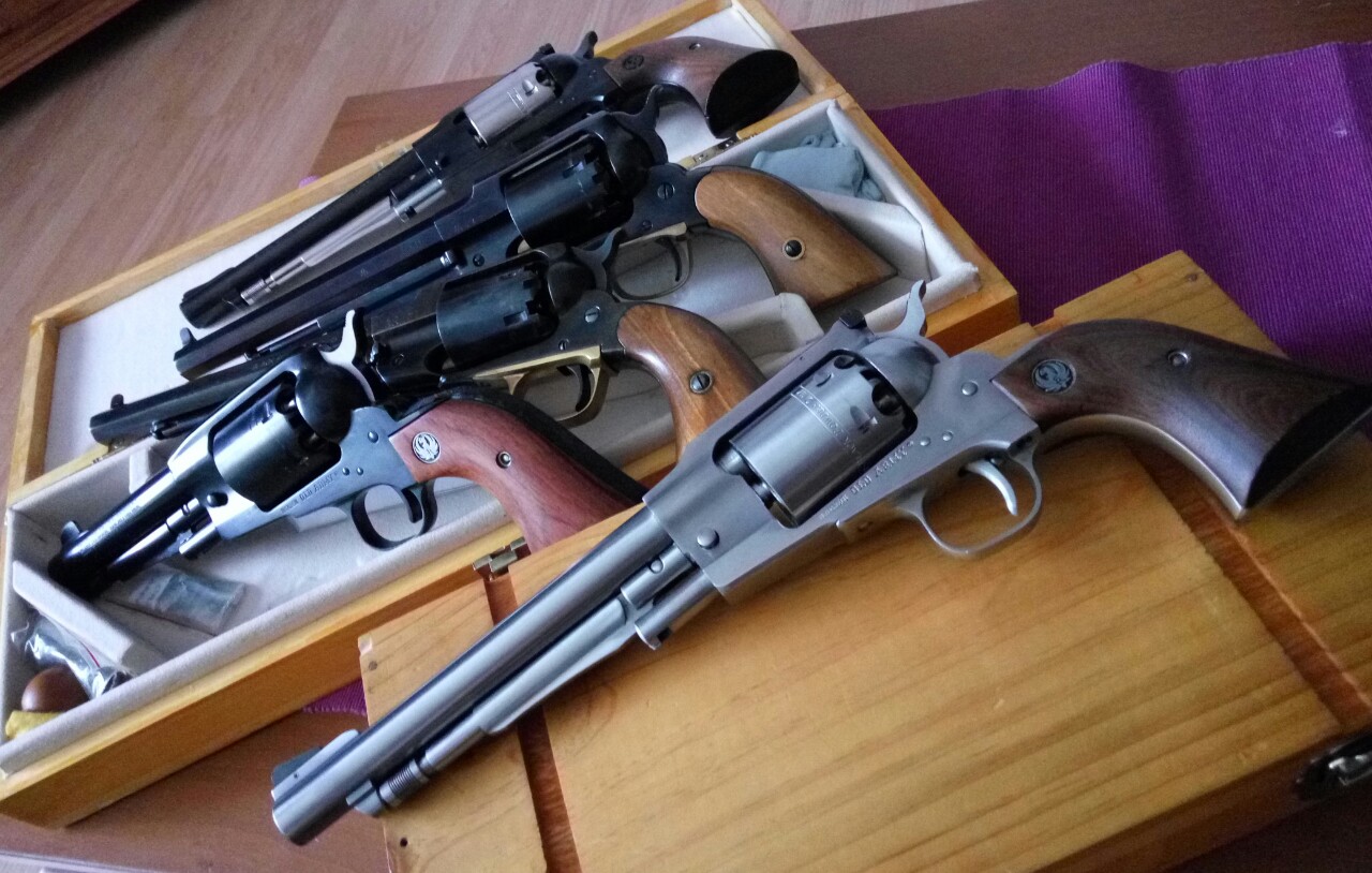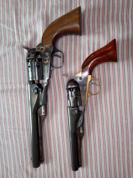 Orion escribió:newarma escribió:Saludos. Ahí van mis Colt. Un Uberti 1861 Navy Steel de 7,5" y un ASM 1862 police con unos accesorios que les estoy haciendo "a juego".