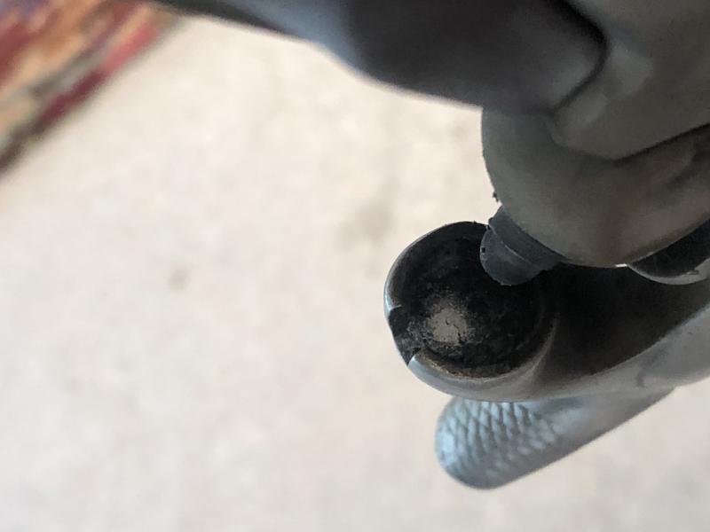 Como curiosidad me ha pasado una cosa que hasta ahora o no me había dado cuenta o no me había sucedido. Yo siempre soplo el cañón tras el disparo, con ello bajo la temperatura de su interior (ahora no, pero en verano estas armas dan problemas de calentamiento) y compruebo que la chimenea no está obstruida, cosa que hoy ha sucedido tras el tercer disparo con lo que he desmontado la chimenea para quitarle la obstrucción (residuo blanquecino pétreo)