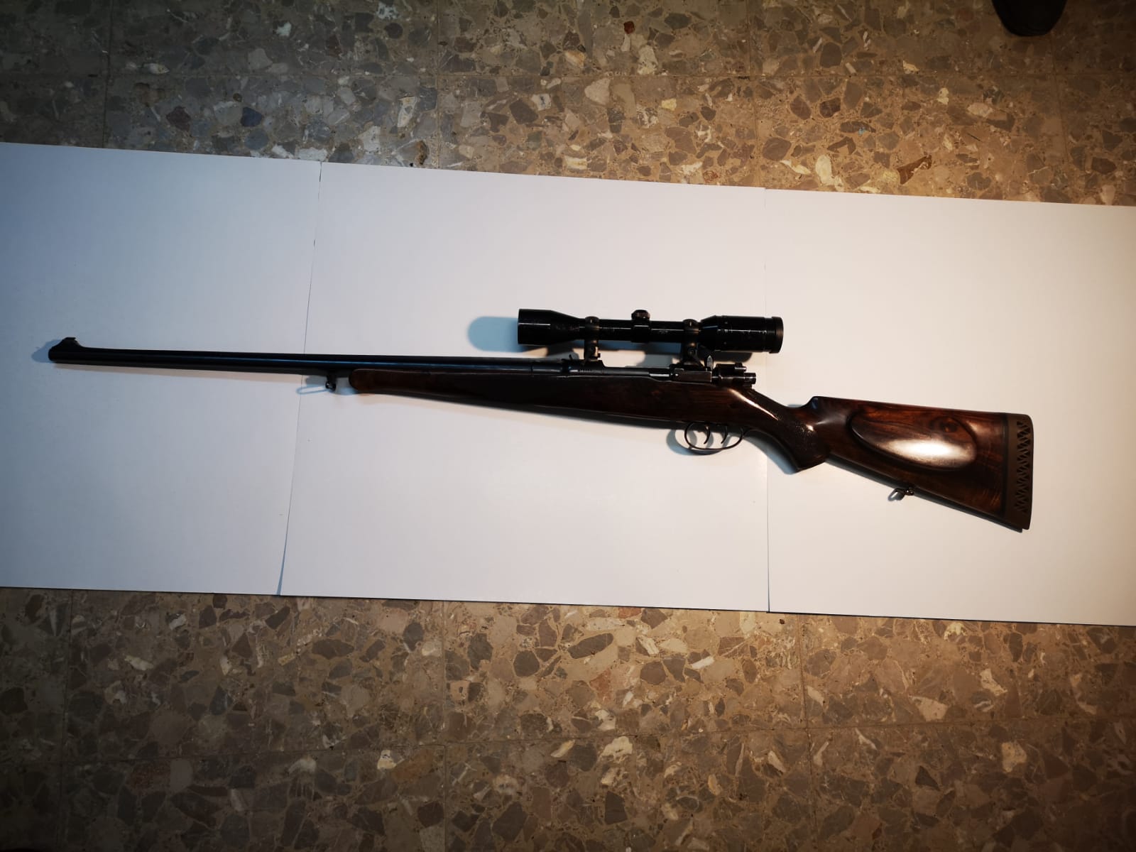 en cuanto pueda, os subo un pequeño reportaje fotográfico que hicimos el otro día mi amigo Rodolfo Villarroel y yo, del rifle restaurado por mi con el montaje completo de visor y toda la pesca.