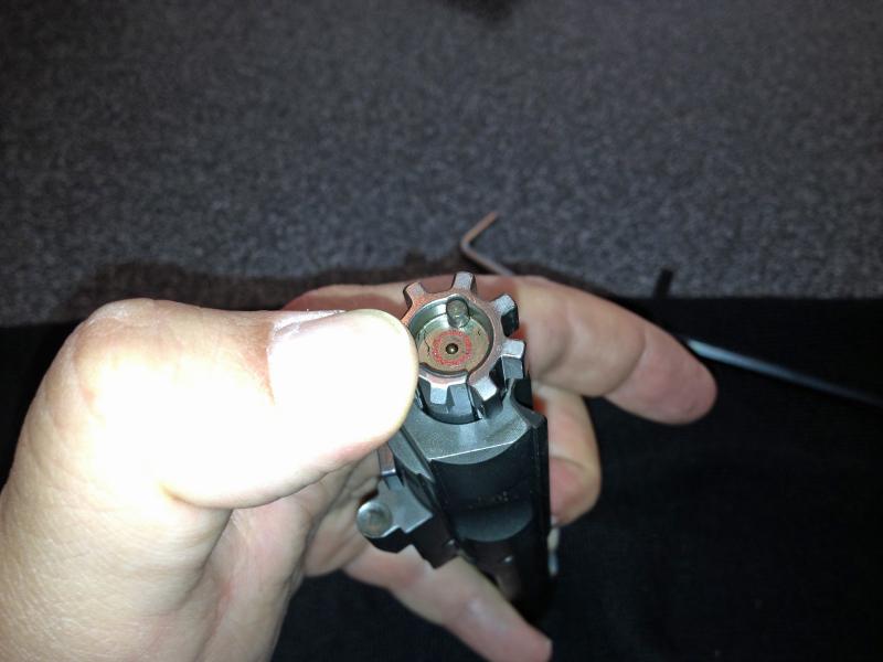 Presionando el interior del pasador con la herramienta conseguimos desbloquearlo y extraerlo. Esto no ocurre en la versión militar, el HK416, que tiene pasadores estandar como el resto de los AR15