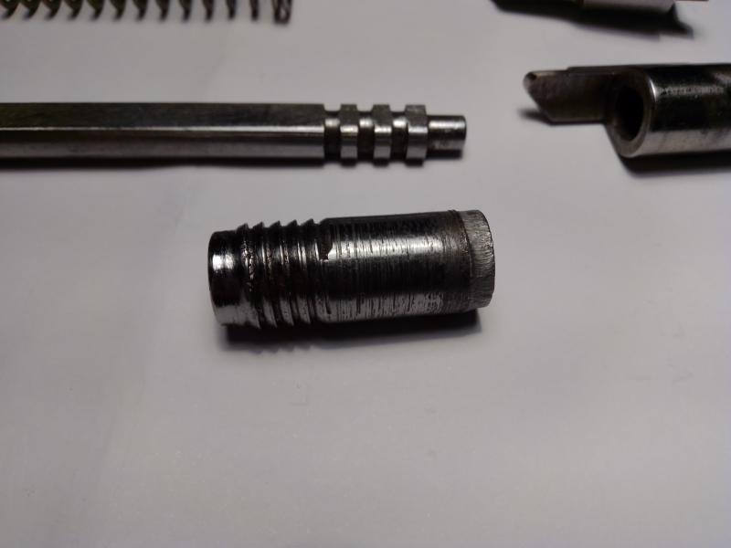 Con tanto video de desmontaje, me hice un lío y he desmontado hasta el casquillo roscado que tiene la nuez, mira lo curioso que es, con el rebaje que tiene para introducirlo en la nuez. Solo me queda montar esté, que lo hará un amigo que es tornero, pues hay que aplicarle calor para volver a introducirlo. Espero el lunes tenerlo listo.