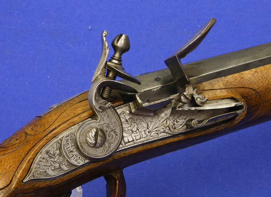 A very nice early 18th century German flintlock gun, signed by Andreas Gans in Augspurg, caliber 15 mm, length 126 cm, in mint condition