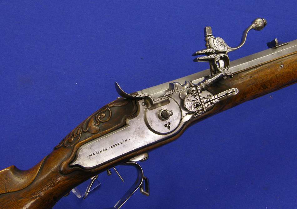 A very nice German wheellock rifle, signed and dated ANDREAS SPAARMAN A BERLIN 1705, caliber 14 mm, length 93 cm, in mint condition