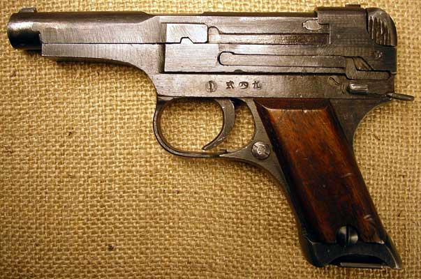 la pistola que citas es una Japonesa Type 94 de 8x21 ,5 Nambu fabricada por la Nambu Rifle Mfg .Co , desarrolada en 1929 y se puso en produccion en 1935 cesando esta en 1945 , se calcula que se fabricaron unas 70.000 unidades