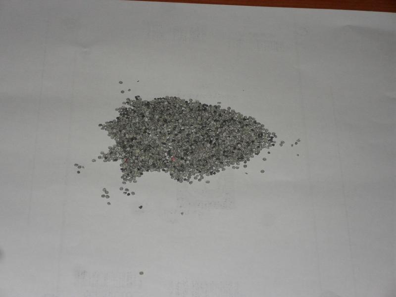 esta es la polvora y los tacos que estoy usando,el punto rojo que se ve en la polvora es un trosito de plastico que se ha caido en ella,el color es el mismo que la ceniza de un cigarro,y esa cantidad es la que le pongo para 32 gr de perdigone,bueno estan son las fotos