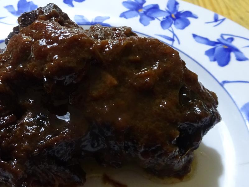 Foto del rabo emplatado, una foto sin salsa y otra menos acertada con salsa.