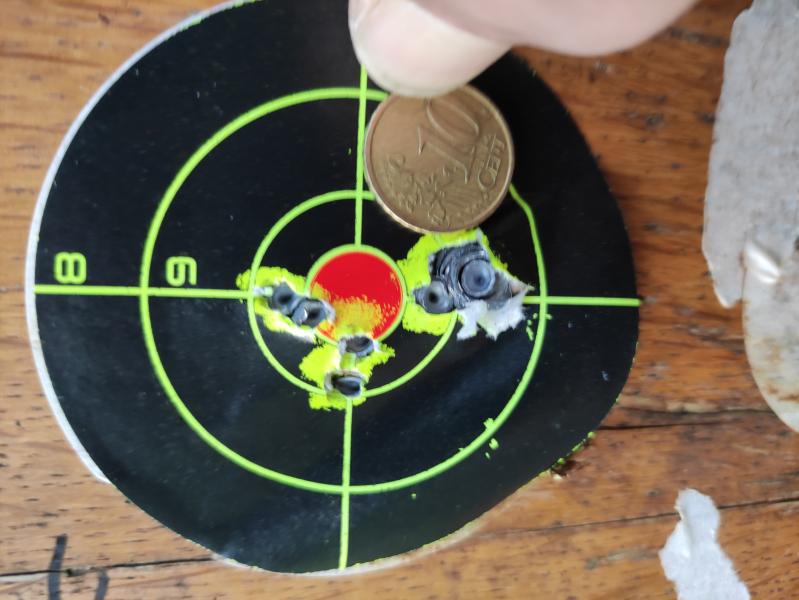 Esta Dianas estas echas con otro pedazo de maravilla una Diana 75 distancia 20m,tres disparos la pegatina naranja sera una moneda de 5cm el verde es equivalente a 1cm,apoyado con saco delantero y trasero.
