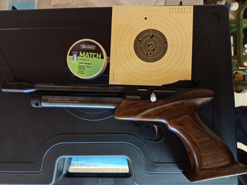 Tengo la licencia F desde hace 8 meses y adquirí hace 6 una Walther GSP expert 32 de 2º mano y carro del 22 comprado nuevo .Con todo lo que está ocurriendo y las pocas oportunidades de entrenar en el club ,practico la técnica básica con esta arma en mi garaje ( la intención es meter en el negro) .Os pongo una diana ( a 10 metros y mano alzada, el tiro fuera del negro es un gatillazo por no renunciar , algo que a mi entender no se le da la importancia que tiene , mi instructor insistía mucho en este tema, y creo que se comenta poco, "entrenar "a renunciar ).La técnica con aire es la misma , y lo aconsejo ( sobre todo a los novatos ) . En seco con tu arma ,me parece muy aburrido ( aunque también necesario ) y adquieres muchos hábitos cuando tiras con tu arma de fuego . Es un arma barata pero sorprendentemente precisa