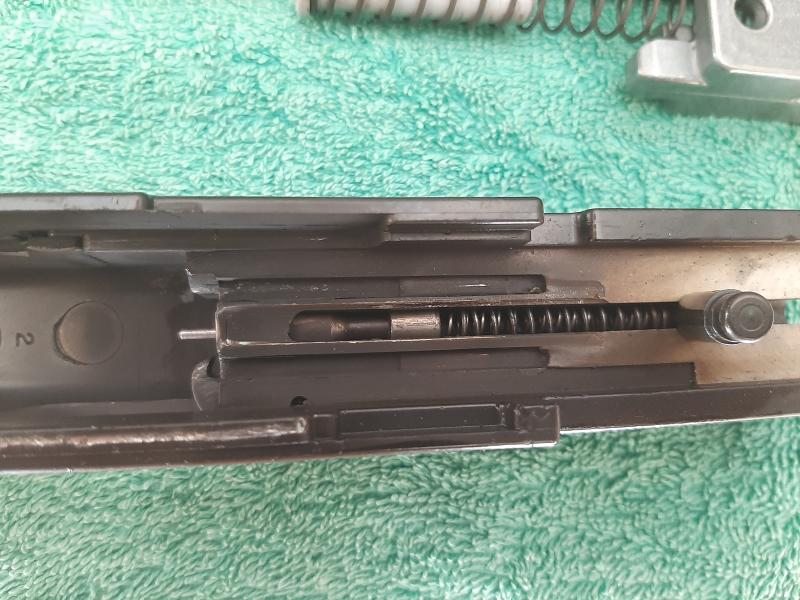 Hola, hoy la he desmontado y la verdad que no es tan complicada, había menos mierda de la que me esperaba habiendo tirado unos 150 cartuchos de club máster pero si que he observado que no estaba engrasada, ni rastro de aceite, al desmontarla, sólo hay que tener cuidado de que no se te caiga y pierdas el tope de los muelles y aguja, no es que estén a presión y salten pero al inclinar algo la pieza, se te pueden caer y