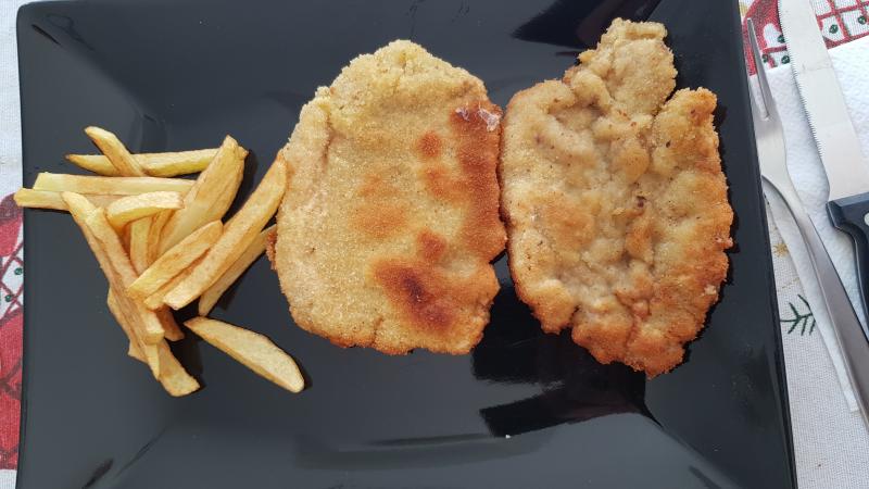 Al final vinieron mis nietos a comer así que he puesto filetes de redondo vacuno empanados, con harina, huevo, pan rallado, huevo otra vez y pan rallado [attachment=0]20211229_133507.jpg[/attachment