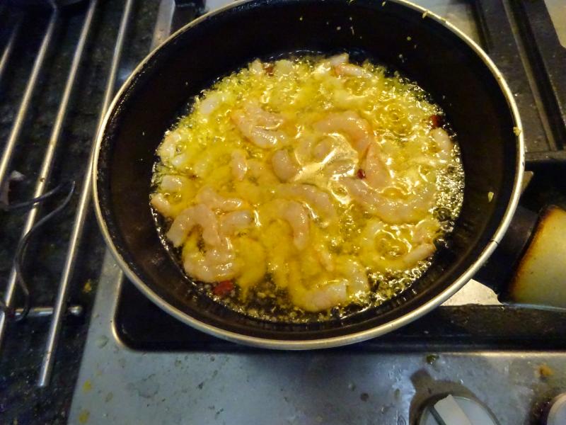 Hemos hecho, en un wok, un revuelto de setas enanas con langostinos que ha quedado de "hipotenusa".