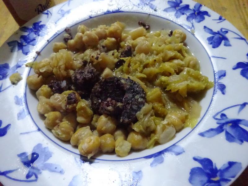 Y para comer hoy garbanzos con berza y morcilla de Burgos que me sobraron de hace unos dias.