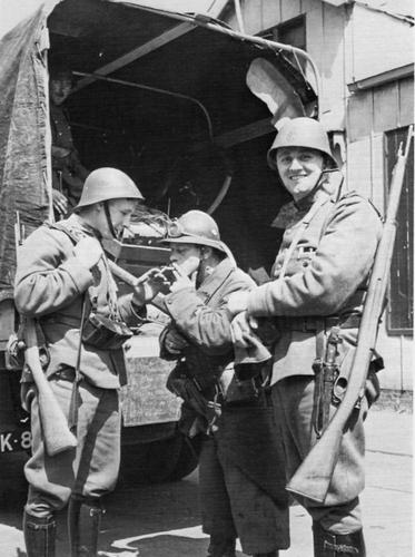 Hoa Texulocu,diria que son soldados Rumanos y el que mira a la camara sonriente porta un fusil MANNLICHER modelo 1893 en calibre 6.5x54 rimmed,el otro parece portar una carabina MOSIN-NAGANT 1938,pero bien podria ser la 1944 o ya mas rara la 1910.Todas en calibre7.62x54 rimmed.