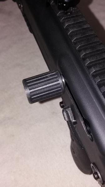 Asi que me busque la vida para el muelle y el tirador del cerrojo, seguro sobredimensionado y talones de cargadores para sacarlos y meterlos con mas seguridad ya que de serie quedan a ras del pistolete y para meterlos bien no es comodo como en una pistola.