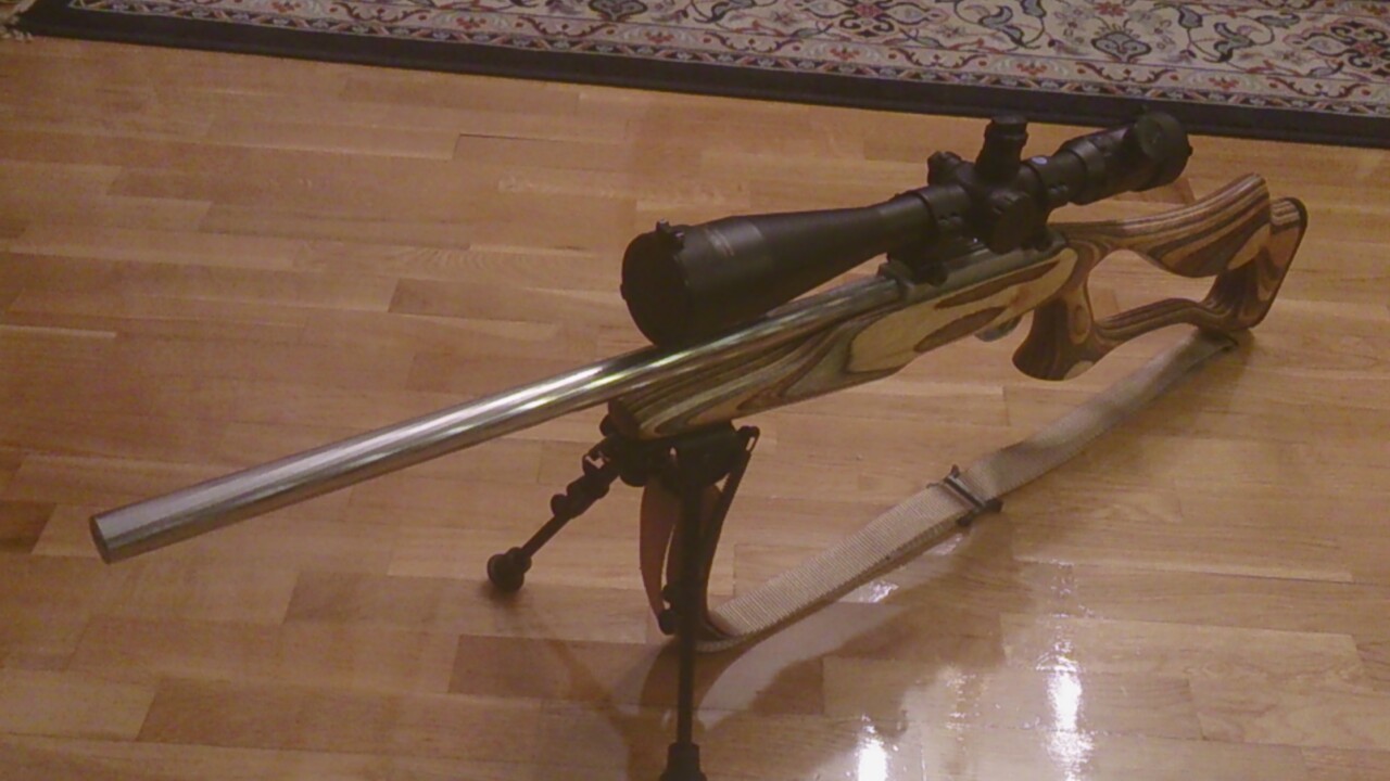 Bueno, exactamente táctica no es, pero yo creo que no ha quedado mal mi Ruger 10/22 Target con cañón inox, culata Boyds Thumbhole SS Evolution y bípode Harris. El visor es un Konus 8,5-32x52 KONUSPRO M-30 con retícula Mil Dot iluminada.