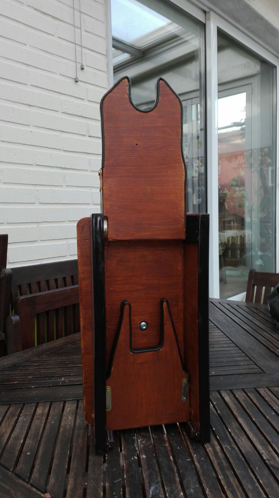 * Conseguido el plegado para colgarla en algún sitio apropiado (falta el agujero para la alcayata), no como quería: recogida sobre sí misma en sus dos alas, pero de momento no tengo solución para meter la torre delantera en el cajón.