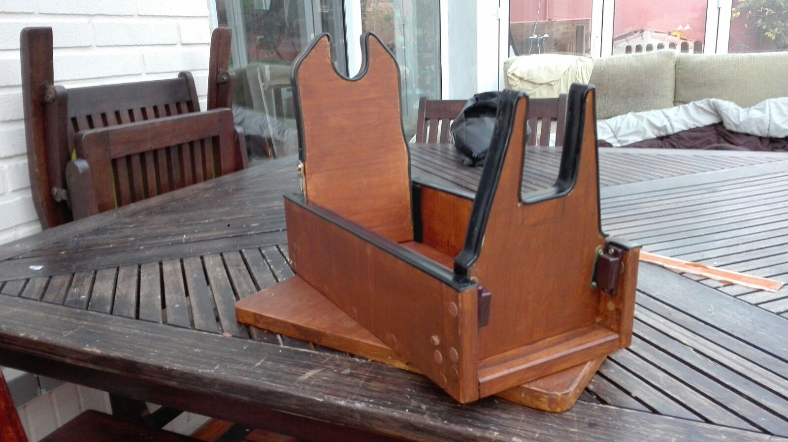 Yo sigo con el proyecto de banco de tiro, mantenimiento. Con la idea que esbocé en post previos y atendiendo las sugerencias de Gerbaro, he montado esta mañana, con unos retales de contrachapado, lo que sería un prototipo en basto, con el que he podido comprobar la estabilidad de la bicha sobre el mismo, la capacidad de levantar el punto de mira y la deriva.
