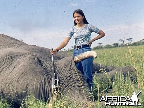 La nena es su hija Gail con el elefante que mató guiada por su padre con ese rifle, pero no con tiro a la cabeza como Bell sino al corazón.