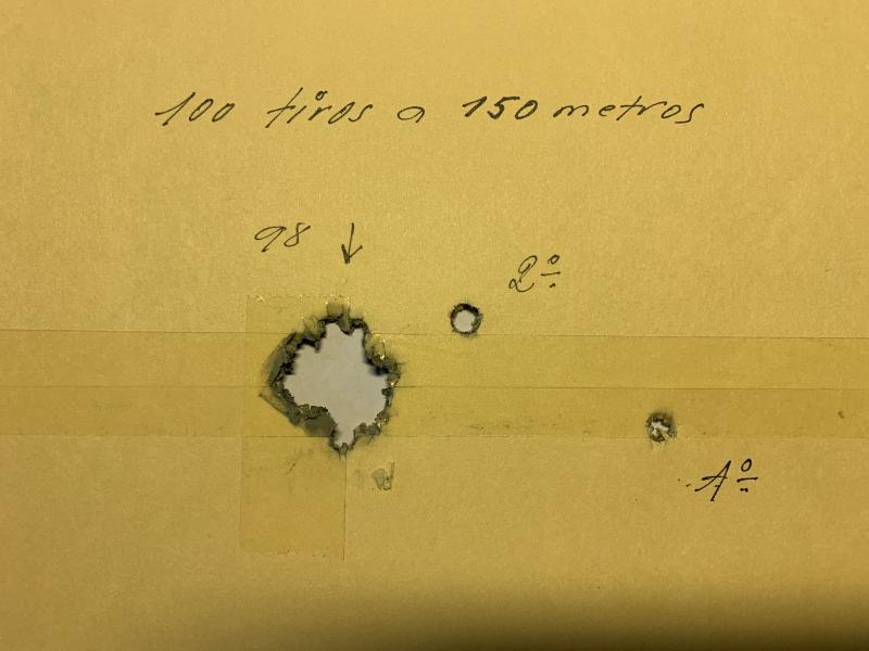 Como estoy formando vainas para competición, he disparado cien balas todas a la misma diana y a la distancia de 150 metros.