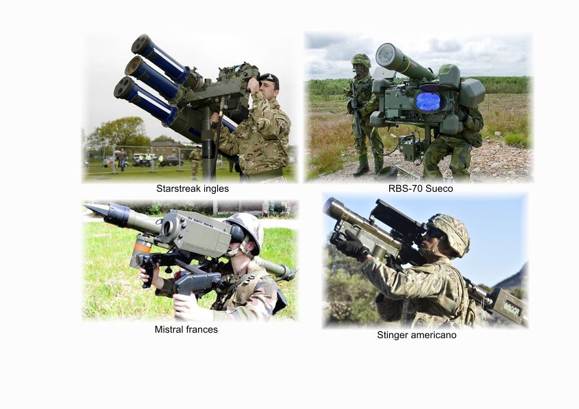 El resto de países algunos cuentan con los Starstreak ingleses, los MANPAPS, los Stinger, los Javelin, el RBS-70 sueco o el Mistral francés y algunos aún conservan algunos Redeye americanos de la primera generación y poco más, en comparación con toda la panoplia de sistemas que cuentan los rusos y ya no digamos los chinos, que van desde los portátiles y ya obsoletos SA-7 de primera generación y SA-14 de segunda generación y los SA-18 de tercera o también los SAM-9 Strela montados en los veteranos BRDM-2 9P31M y ya no hablemos sobre sistemas móviles sobre cadenas o ruedas de media y alta cota como los SA.6 Gainfull, SA-11 Gaffly, SA-13 Gopher, SA-15 Gainful y así hasta los últimos Telar 9A84ME, todo sistemas para proteger sus unidades en el campo de batalla.