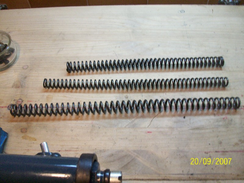 Creo que el primer muelle es el que trae la carabina en su interior, el segundo es el que la acompaña en la caja y el tercero es el que ahora mismo lleva montada la carabina del compañero XKR, se ve que la diferencia entre ellos es abismal.