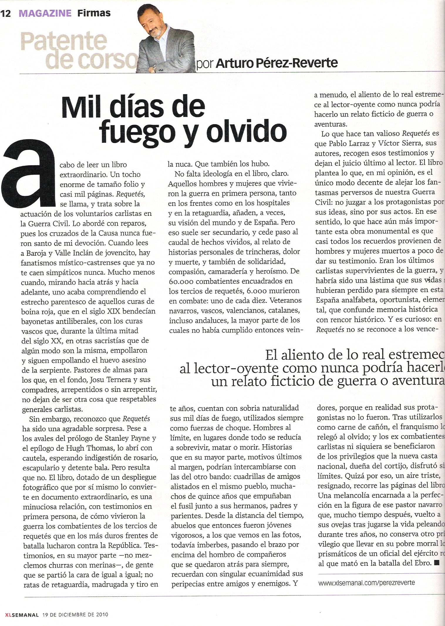 Es un libro que "asusta" cuando lo coges por el "peso" de su tamaño (el precio tampoco ayuda)... yo en particular lo he tenido en las manos varias veces, pero no me atrevo a comprarlo por que al verlo pienso que puede acabar "decorando" la estantería. Ahora, al ver los comentarios de Reverte igual me animo... aunque sólo sea por las fotos!!. Tengo otros libros de los carlistas pero son de las guerras carlistas del XIX. Últimamente parece que el tema ha cogido fuerza en las editoriales, hay bastante material.