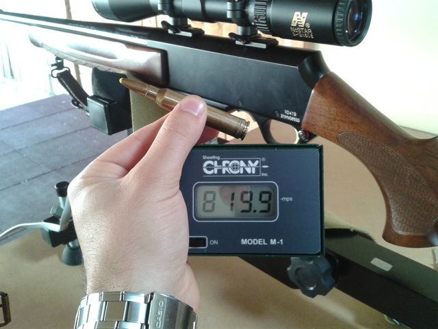 El Browning LT. con cañon de 51 y bala de 165 gr me da 860 m/s. Las balas son recargadas