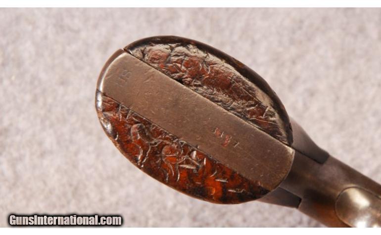 se trata del Reichsrevolver modelo 1879 (M 1879), reconocible gracias a que la base de la empuñadura tiene un talón metálico, que es parte del armazón.