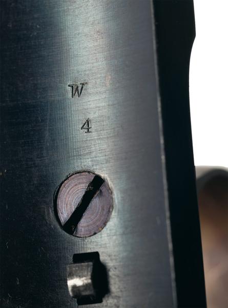 Adjunto imagenes de las marcas "P" del ejercito y de las iniciales del inspector, que se encuentran en todos los Schofield militares.