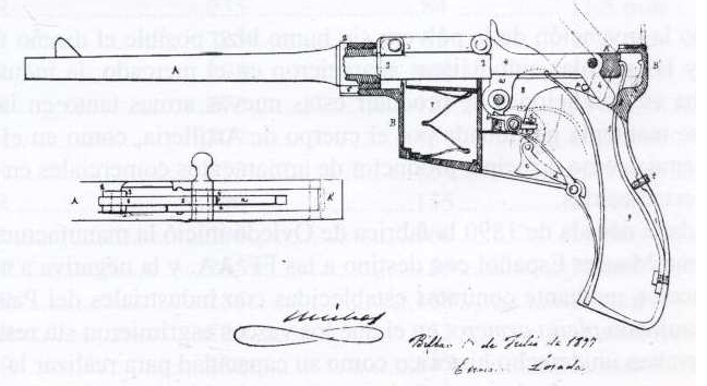 La cuarta patente se concedió en 1903 a Bonifacio Echeverría para una pistola basada en la Parabellum alemana y que tampoco llegó nunca a fabricarse. (foto 2)