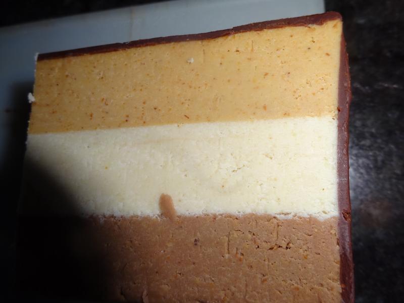 -Tarta de queso, peras estofadas y helado de tomillo.
