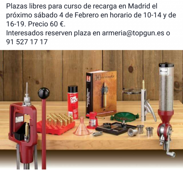 22 de Abril en club de tiro de Jaén mas información en https://www.cursoderecargaenandalucia.com