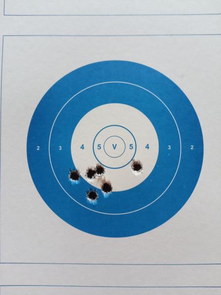 Tanto como 4 cmts no, pero en el blanco que colgué se va al tiro más cercano del grupo 2,5 cmts. Vamos a imaginar que fue el siguiente tiro, que no me acuerdo. Sí recuerdo claramente que el más alejado fue el quinto.