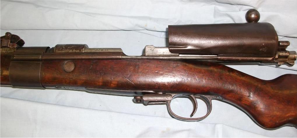 yo diria que la particularidad ,...y que me corrijan si me equivoco es que lleva en la culata un rail y arriba en la carcasa una tapa al estilo de los Japoneses Arisaka que va hacia adelante y hacia atras guiado por el rail , para evitar que entre suciedad en la recamara y en el deposito