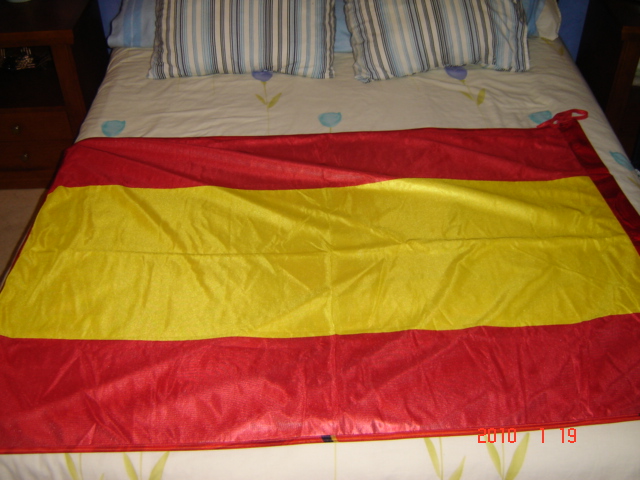 Desde que vi esa bandera un día en una foto, en un restaurante encima de dos prendas, me dije que tenía que conseguir una a toda costa, pa que veas si ha costao, que me la han mandao de Ciudad Real, unos contactos :D