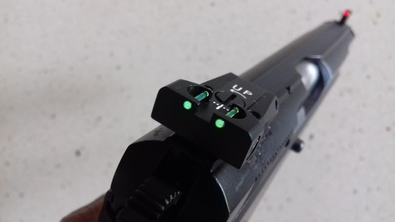 El punto de tus fotos se ve bastante alto respecto al original, supongo que el alza tambien quedara mas alta que la original. ¿Tu tapas el blanco con el punto o lo ves por encima (es la forma que a mi me gusta apuntar, viendo siempre el blanco), enrasado con la alineacion de los 3 puntos?.