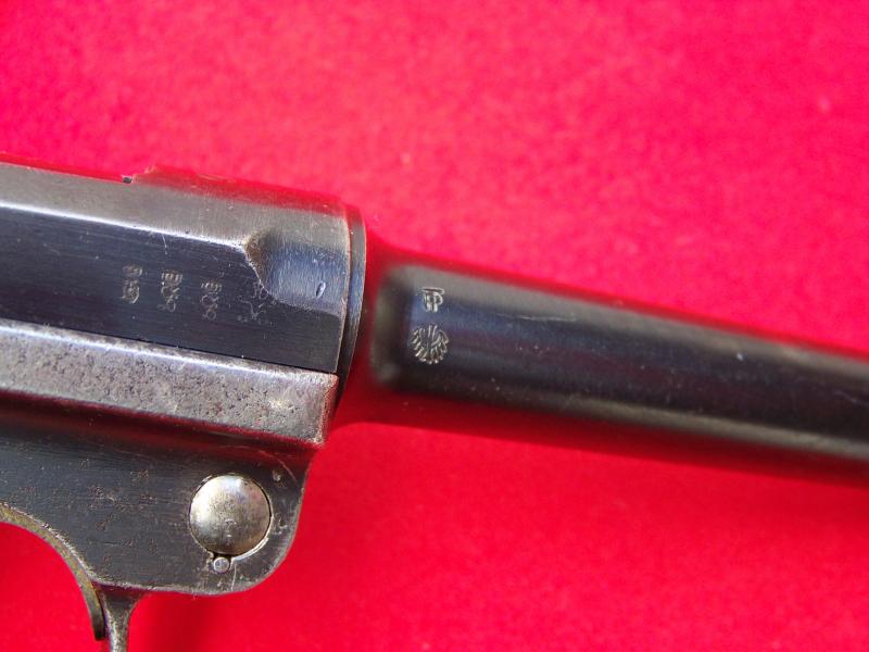 En este caso se trata de un arma cuyo cañón fué sustituido entre 1935 y 1940 en la Escuela Tecnica de la Policia en Berlin (pertenece a un arma que estuvo de dotación en la policia alemana del III Reich, a pesar de ser una DWM fabricada durante la I Guerra Mundial para el Ejercito del Kaiser).