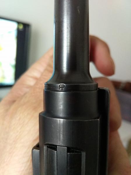 En este de arriba puedes ver el marcaje que presentaban los cañones cambiados en la antigua Republica Democratica Alemana, en este caso en un arma que estuvo destinada en los "VoPo", la Policia comunista, y que despúes parece ser fué remarcada cuando el arma se vendió en el mercado occidental ( 9 m.m. P y el aguila/N de los marcajes alemanes occidentales).