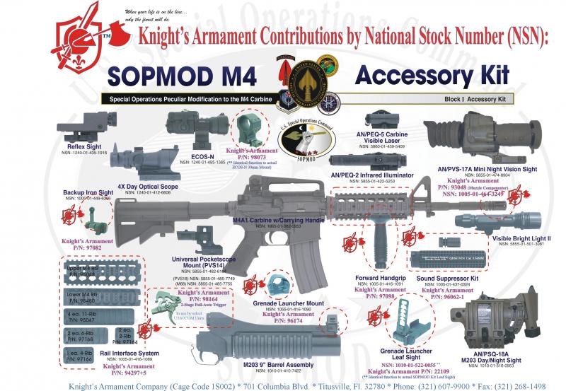 Por simplificar, el programa SOPMOD de mejora del M4A1 empezó con el Block I (con el guardamanos KAC RAS no flotado y una serie de accesorios), siguió con el Phase Replacement/Block 1.5 y acabó con el Block II (en este último se usan guardamanos Daniel defense RIS II flotados). Ahora el US Army ha aprobado el programa URG-I, que sería el equivalente al Block III en el USASOC, que usa guardamanos Geissele MK16 flotado.