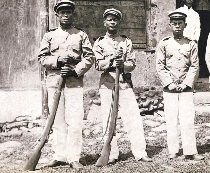 Los otros son efectivamente unos de aquellos excelentes fusiles fabricadas en Oviedo, los Mauser 1893 en manos de filipinos uniformados.