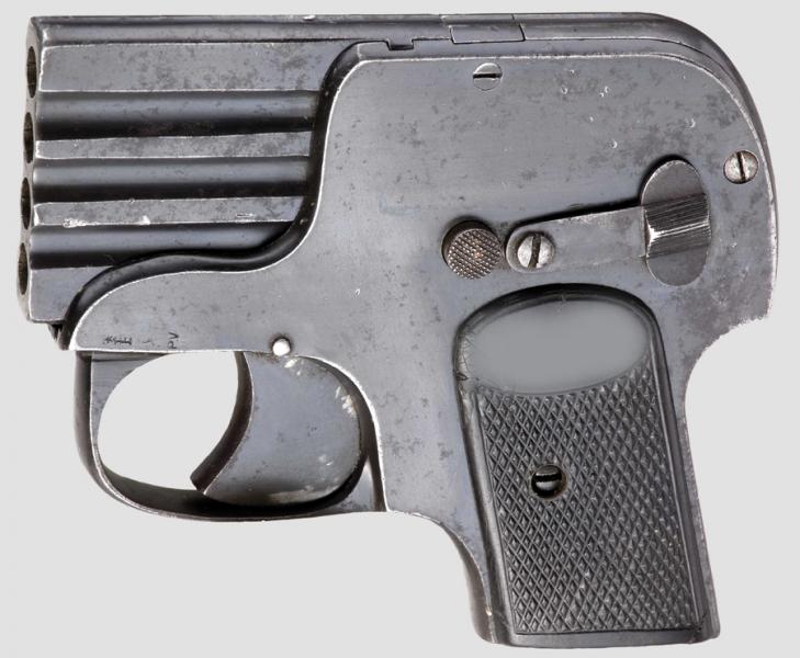 Esta pistola de Texulocu, por los punzones que presenta, parece que es una copia belga en 6,35 mm de la Reform alemana con el sistema de 4 cañones fabricada por Schüler que había salido el otro día.