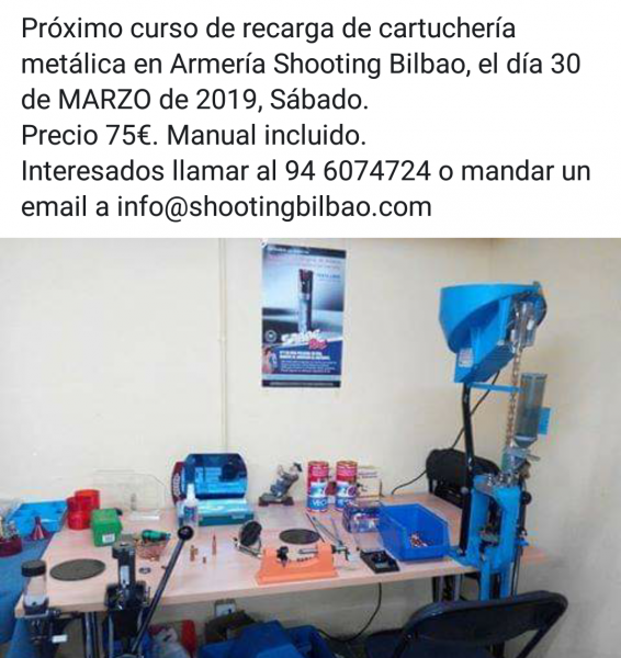 Próximo curso de recarga de cartuchería metálica en Armería Shooting Bilbao, el día 23 de FEBRERO de 2019, Sábado.
