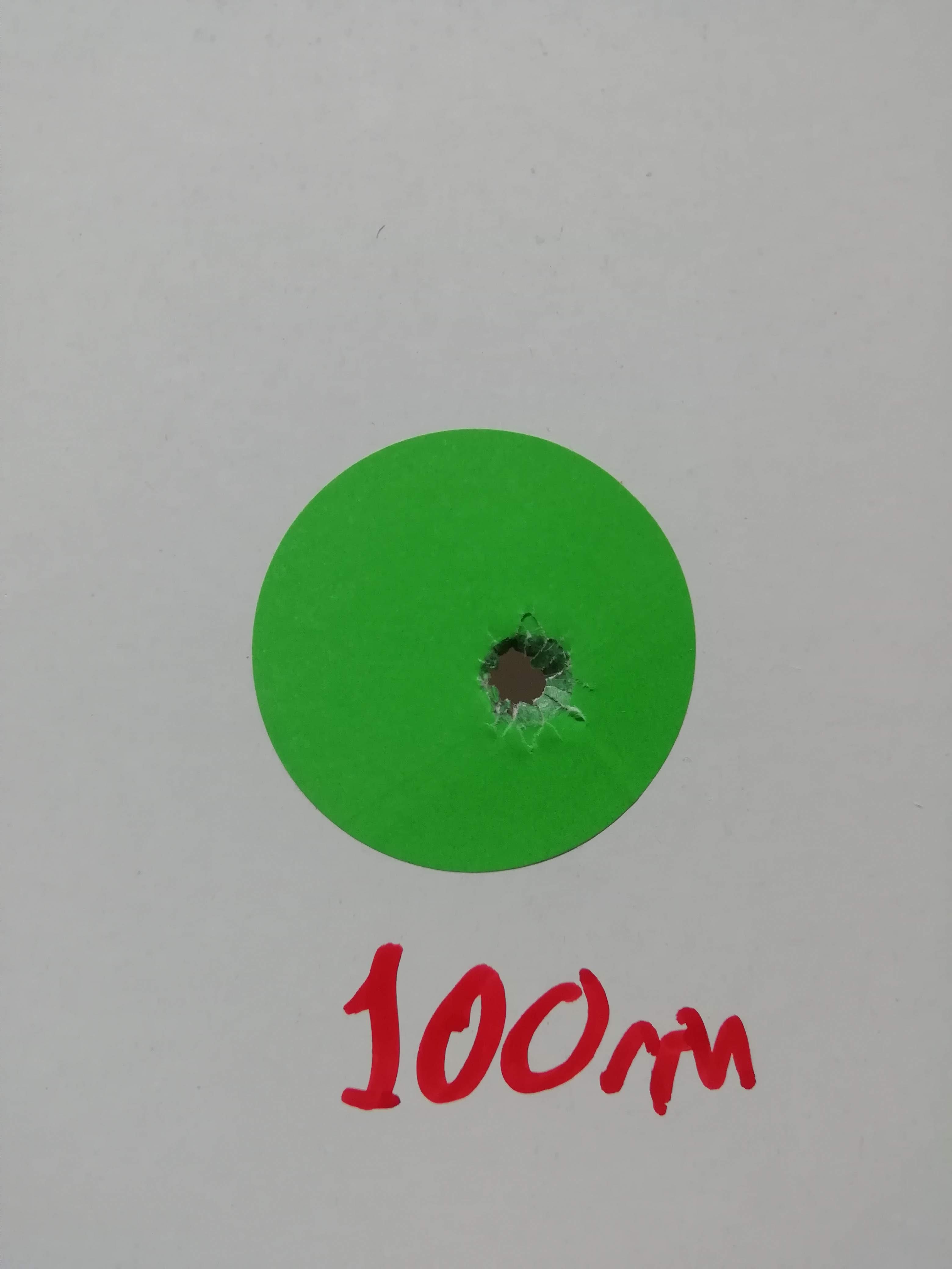 Yo a 100 mts le dejo siempre 2-3cms por encima del blanco, lo que sería entre el 8 y el 9 de una diana.