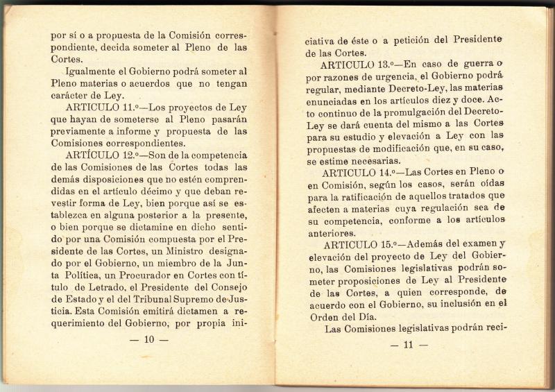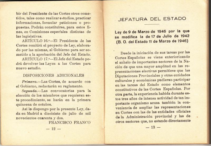 Librito del Reglamento de las Cortes Española. de 1942 y 1946.