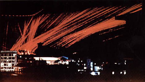 Y eso que el fuego que se veía era una de cada cinco balas (las trazadoras van en general 1/5 o 1/10, en el Puff era lo primero). En medio había otras cuatro que no se veían. Calcula.