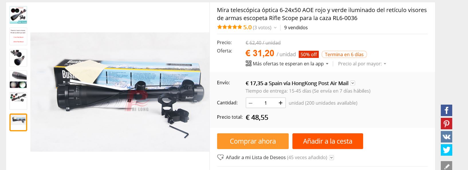Pues es el clásico y barato, que venden con 20 marcas distintas los chinos, Tasco, Bushnell, y etc, etc, es mas, le puedes comprar tu mismo una partida de ellos, 10, 20, 1000 visores, y te ponen ellos la marca que tu le digas......, y aun hay ese mismo modelo mas barato todavía, alrededor de los 35 €, pero decir que ese visor se ve también como uno que pasa de los mil €, es algo fantasioso, descabellado e increíble, porque entonces, si mirais por un visor chino de entre los 200-300 €, para algunos, serian el no va mas en óptica....................