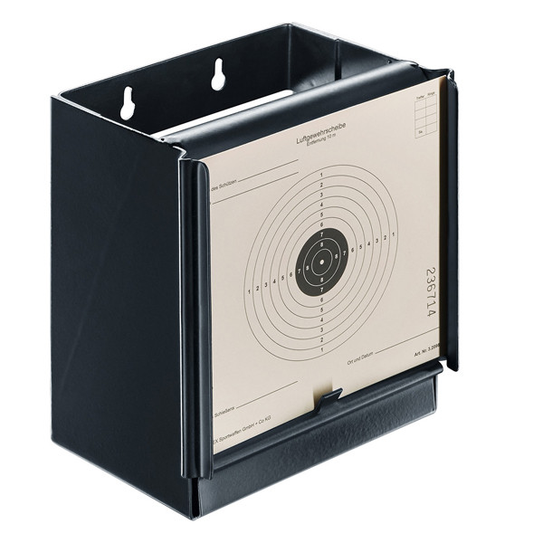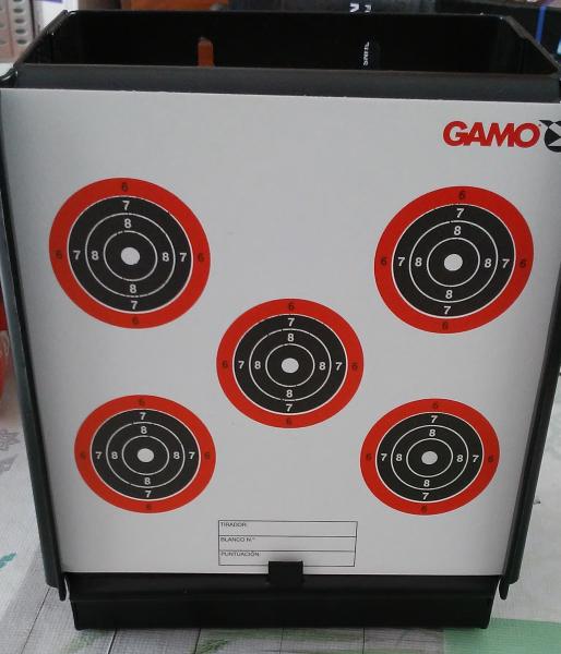 Hola, ya sé que no es un cazabalines pero es divertido. Lo uso a 10 metros con miras abiertas. El tablero de atrás está inclinado para evitar rebotes. Un saludo.