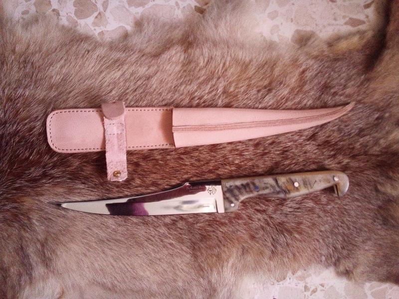 A mi me parece precioso, sin guarda como está, aunque el ancho de las cachas al llegar a la hoja puede hacer en parte esa función. El cuerno de carnero de esas cachas (al menos eso parece), con esas vetas, resulta muy atractivo y le da ese toque rural que me parece unido a estos cuchillos.