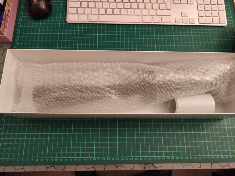 Y este, que cuesta 5 veces mas y que se supone premium, enrrollado en un trozo de burbujas sin mas cual morcilla se envuelve en una carnicería. De hecho, en las review que he visto por internet, debería venir una funda de neopreno, pero ni rastro de ella. Supongo que será solamente en otros modelos.