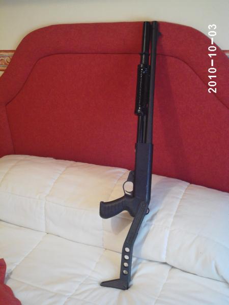 Mi Remington 870 Synthetic con portacartuchos y guardamanos corto.